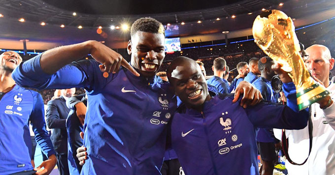 Ngày 15 tháng 7 năm 2018, Pháp vô địch World Cup ở Moscow với những tấm huy chương vàng lấp lánh được trao từ tay Tổng thống Nga Vladimir Putin và Chủ tịch FIFA Gianni Infantino. Tổng thống Pháp Emmanuel Macron đội mưa tầm tã ôm từng cầu thủ một, thậm chí trong lúc phấn khích còn tặng Kylian Mbappe một nụ hôn lên trán.
