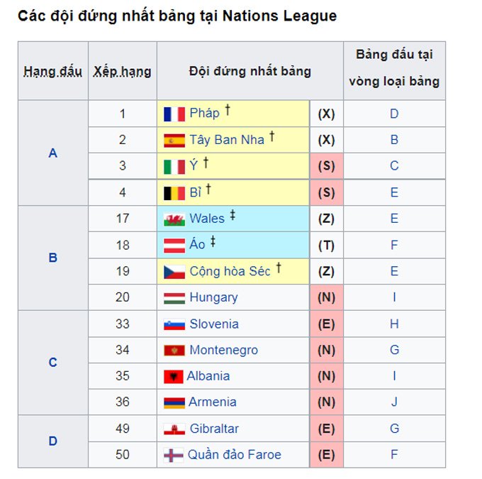 Thực tế thì Xứ Wales vẫn có thể giành vé một cách đường đường chính chính chứ không cần nhờ tới thứ hạng tại Nations League. Họ hiện đang đứng thứ 3 tại bảng E với 11 điểm, bằng với đội xếp thứ 2 là CH Czech nhưng xếp dưới do kém về hiệu số và thi đấu ít hơn 1 trận.