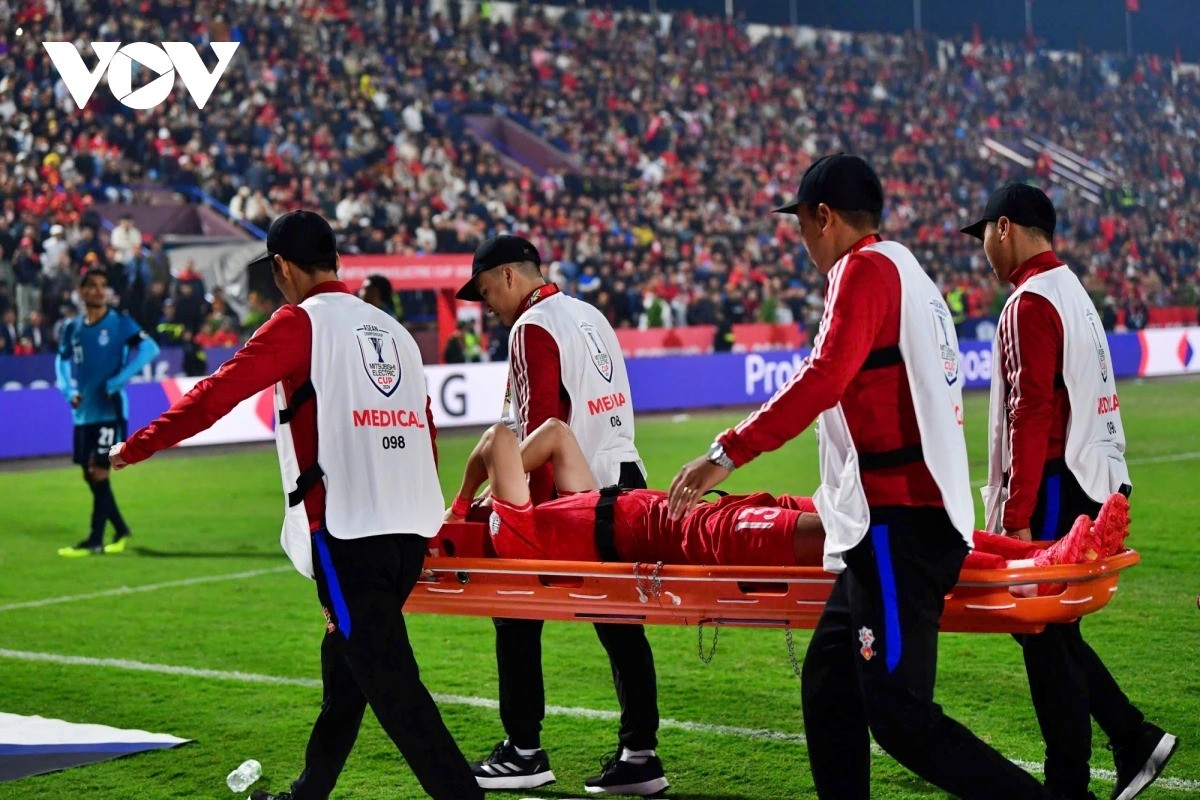 Cụ thể, hậu vệ Văn Thanh phải rời sân bằng cáng sau pha va chạm với cầu thủ đội khách ở phút 70. Người vào sân thế chỗ cho Văn Thanh là Tấn Tài cũng gặp phải chấn thương nặng sau tình huống khống chế bóng lỗi, rồi rời sân trên cáng.