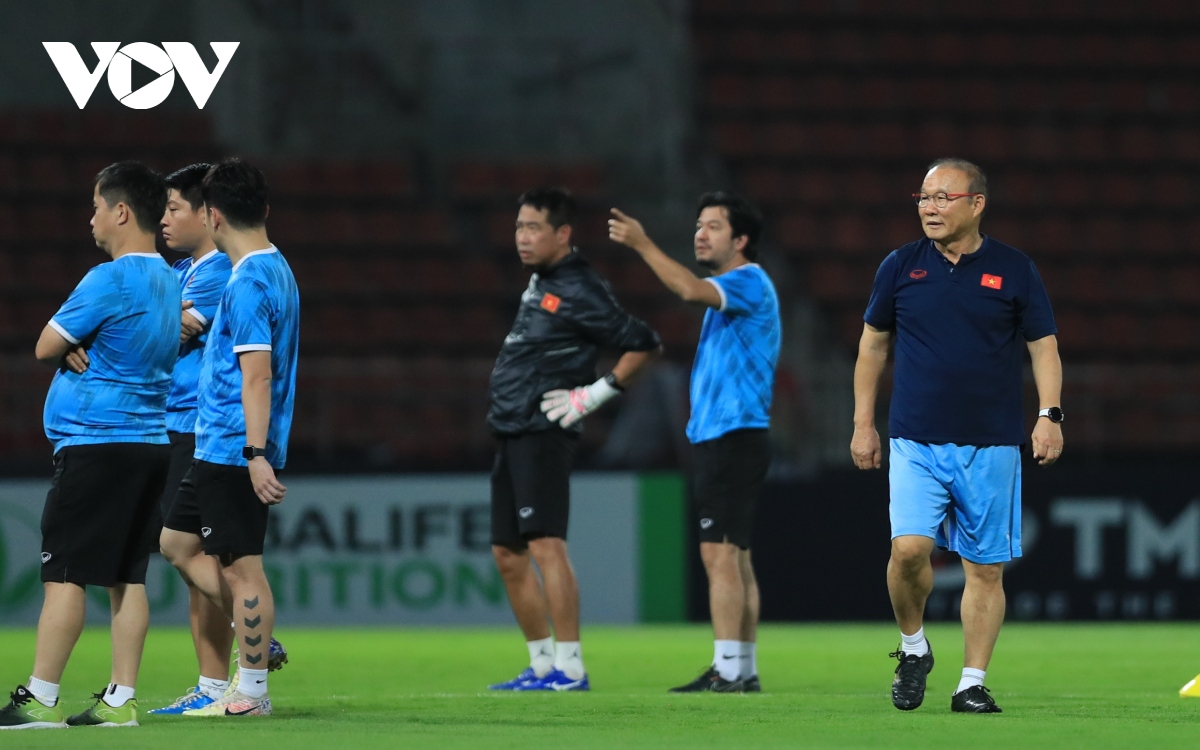 ĐT Việt Nam tập buổi cuối cùng dưới thời HLV Park Hang Seo khi chuẩn bị cho trận chung kết lượt về AFF Cup 2022 trên sân Thammasat.