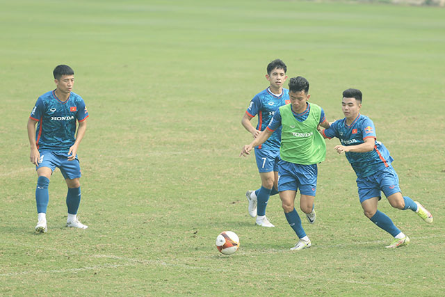 “Quan sát kỹ rồi chuyền bóng. Nếu đồng đội bị động, người chuyền không đưa bóng đến đó. Lưu ý rằng các bạn chỉ chuyền khi đồng đội chủ động di chuyển đến khoảng trống và sẵn sàng nhận bóng”, trợ lý Moulay Azzeggouarh trao đổi trực tiếp với các cầu thủ tập luyện xoay quanh mình.