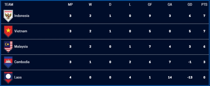 Việt Nam thắng Campuchia, Indonesia thắng Malaysia với cùng cách biệt như Việt Nam.