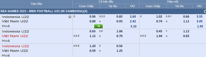 Trên thị trường, tỉ lệ đồng banh rất hiếm. Không ít nhà cái chọn tỉ lệ U22 Indonesia chấp đồng nửa và thật hấp dẫn khi chọn dưới. Chúng ta tin "những chiến binh rồng vàng" thế hệ này sẽ tiếp tục nối bước đàn anh để sáng tạo kỳ tích, phía trước là chung kết và bảo vệ thành quả đã nắm giữ hai kỳ đại hội vừa qua.