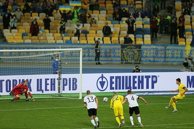 Những nỗ lực của Ukraine giúp chủ nhà có được bàn gỡ ở phút 76, với pha làm bàn của Ruslan Malinovsky trên chấm phạt đền.