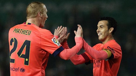 Jeremy Mathieu là người mở tỷ số cho Barca ở trận đấu đêm qua |