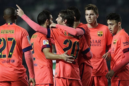 Rạng sáng nay, Barcelona đã vượt qua Elche với tỷ số 4-0 ở trận lượt về vòng 1/8 cúp Nhà vua. Như vậy, qua 2 lượt trận đội bóng xứ Catalan đã hủy diệt đối thủ với tổng tỷ số 9-0, qua đó giành quyền tham dự vòng tứ kết.