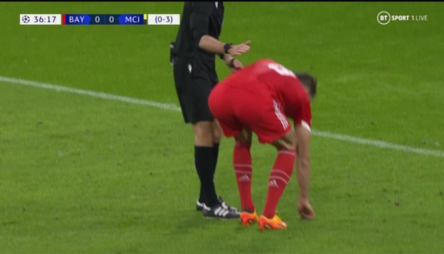Tưởng như Haaland sẽ được thực hiện quả 11m yên ổn thì Goretzka lại ra hiệu với trọng tài rồi bước lên nhặt thứ gì đó để ném ra ngoài sân. Kết quả sút 11m thì ai cũng nhìn thấy, Haaland không thành công.