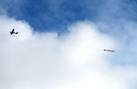 Cách chiến thắng 4-0 của M.U trước Chelsea không lâu, fan M.U đã góp tiền thuê máy bay mang theo biểu ngữ "Glazers Out" (tạm dịch: Nhà Glazer cút đi) bay nhiều vòng trên bầu trời Old Trafford. Đây là hành động tiếp nối việc các CĐV gửi thư ngỏ trực tiếp tới những ông chủ người Mỹ, thể hiện sự thất vọng khi so sánh tình hình của Quỷ đỏ bây giờ so với lúc họ bị mua lại vào năm 2005.