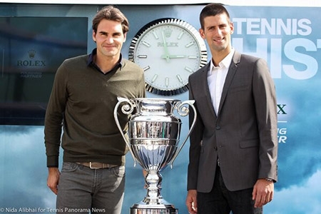 Federer và Djokovic tạo nên trận chung kết trong mơ tại Dubai Championship. Ảnh: Tennispanorama |