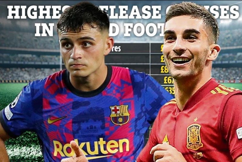 Theo đó, top 10 gồm toàn cầu thủ của Barca và Real. Đứng đầu là bộ đôi Ferran Torres và Pedri của Blaugrana cùng Karim Benzema của Kền kền trắng với cùng mức giải phóng lên tới 1 tỷ euro (847 triệu bảng).