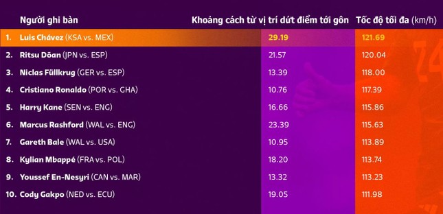 Ngay sau khi vòng 1/8 khép lại, FIFA đã công bố danh sách các bàn thắng được ghi với tốc độ trái bóng bay nhanh nhất. Không bất ngờ khi đứng đầu là pha sút phạt thần sầu của Luis Chavez trong trận Mexico thắng Saudi Arabia 2-1.