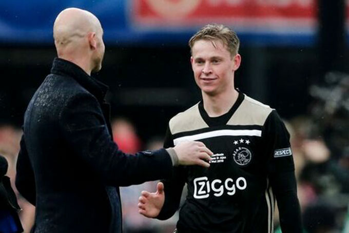 Man United đã đồng ý khoản tiền Barca yêu cầu để sở hữu De Jong - và ít HLV nào trong thế giới bóng đá hiện nay hiểu anh hơn Erik ten Hag. De Jong đã có 59 lần ra sân trong hai mùa giải ở Ajax dưới sự huấn luyện của Ten Hag. Anh cùng với tiền vệ giàu kinh nghiệm Lasse Schone là bộ đôi đóng vai trò là trái tim đội bóng ở mùa giải 2018/19, giành cú đúp danh hiệu quốc nội và chỉ bị loại một cách đáng tiếc ở trận bán kết lượt về Champions League trước Tottenham.