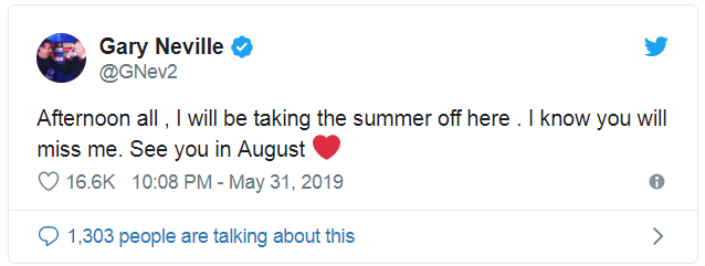 17/06/2019 17:00Gary Neville phá bỏ lời hứa, trở lại Twitter để chế nhạo Jamie Carragher