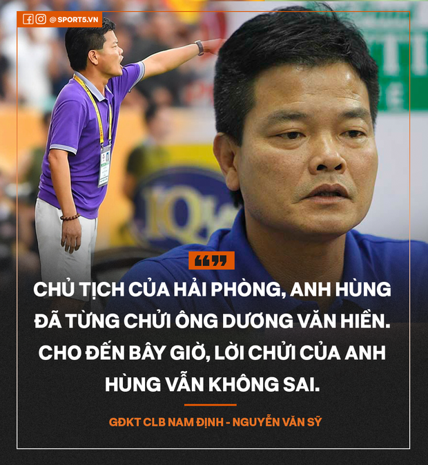 Cách đây vài năm, chủ tịch của Hải Phòng, anh Hùng đã chửi ông Dương Văn Hiền. Cho đến bây giờ, lời chửi của anh Hùng không sai. Làm Trưởng ban trọng tài gì mà để một đội bóng chịu thiệt 3-4 trận liên tiếp thế này. Chúng tôi có cần và yêu cầu phải thế này thế kia đâu, chỉ cần công bằng để bóng đá Việt Nam phát triển thôi. Như thế mới có nhiều nhà tài trợ, mới có tiền để đi lên nếu không mãi mãi chỉ là "ao làng" thôi", ông Nguyễn Văn Sỹ, GĐKT CLB Nam Định nói.