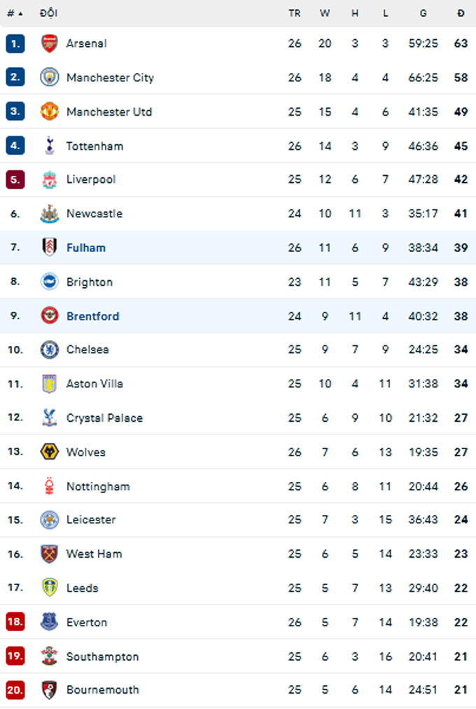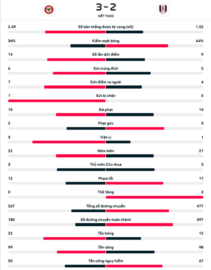 Tỷ số cuối cùng là 3-2 nghiêng về phia Brentford. Fulham lỡ cơ hội cân bằng điểm số với đội đứng thứ 5 là Liverpool. Họ vẫn giậm chân ở vị trí thứ 7 với 39 điểm sau 26 trận. Trong khi đó, Brentford đứng thứ 9 với 38 điểm sau 24 trận.