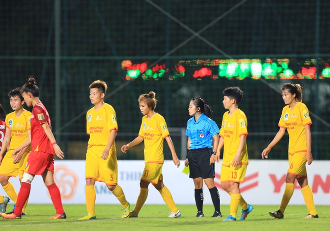 CLB Phong Phú Hà Nam phản đối quyết liệt với quyết định này của trọng tài chính Trần Thị Thanh và các cầu thủ đã bỏ ra ngoài sân, bỏ dở trận đấu.