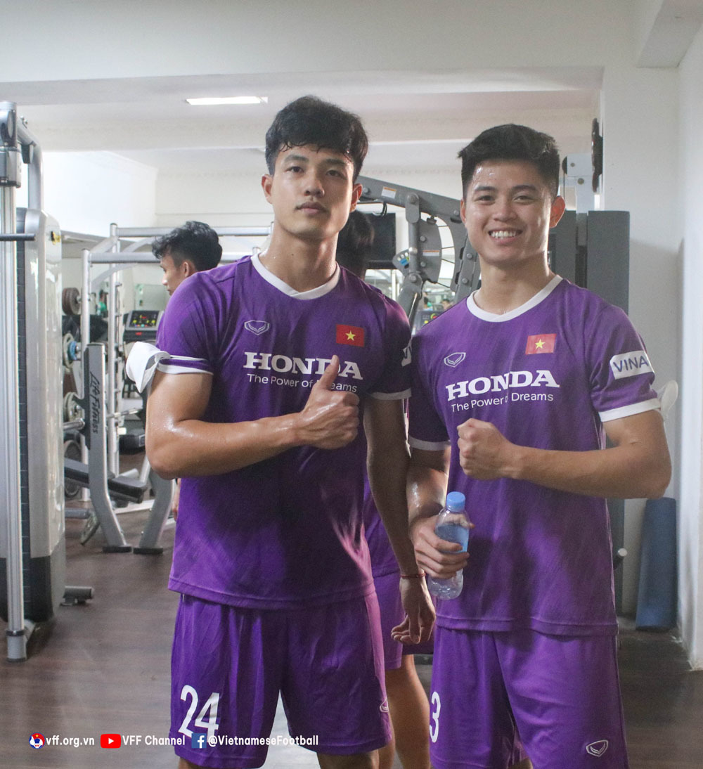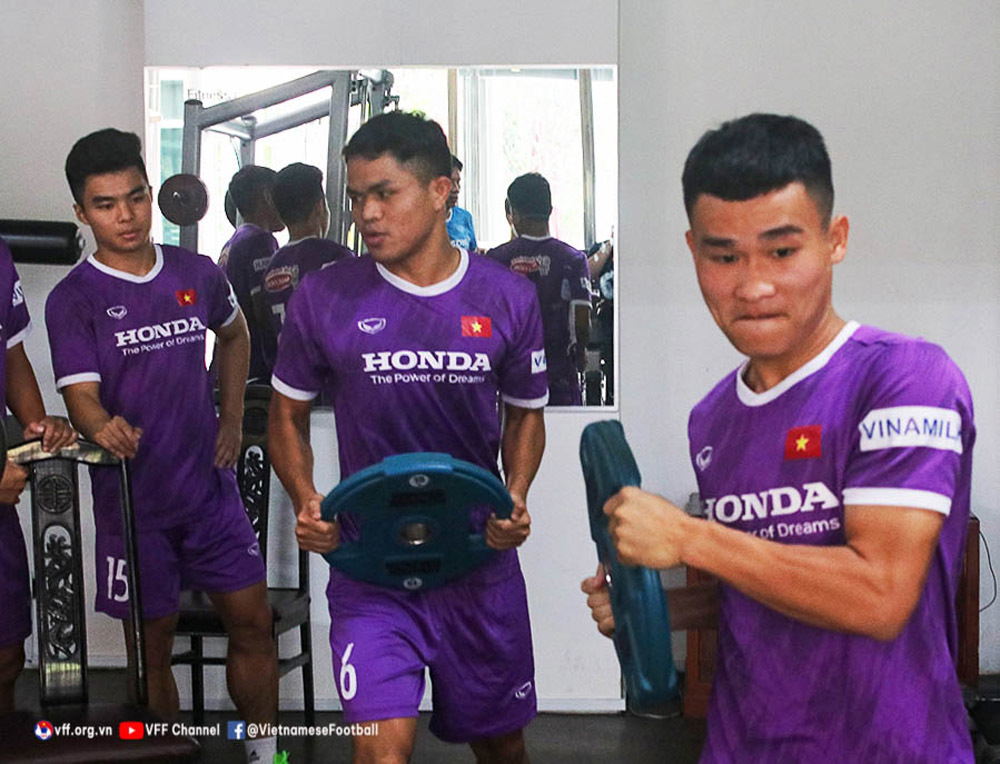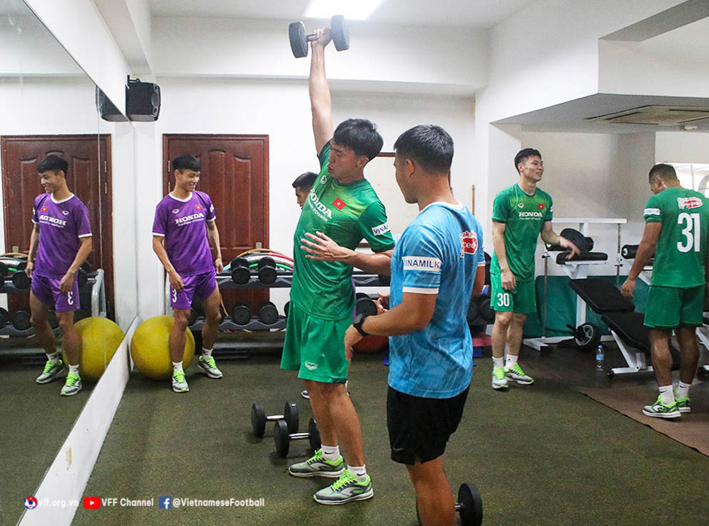 Liên quan tới sự chuẩn bị của U23 Việt Nam, sau khi xét nghiệm nhanh âm tính với Covid-19, U23 Việt Nam có buổi tập thể lực ở phòng gym của khách sạn Phnom Penh.