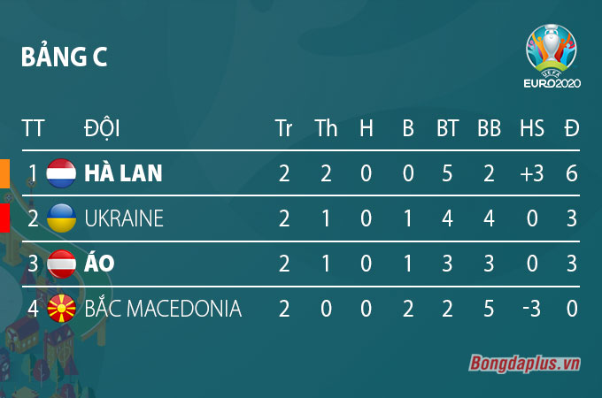 Trận đấu Hà Lan vs Áo kết thúc với tỷ số 2-0 nghiêng về phía đội chủ nhà. ĐT Hà Lan trở thành đội thứ 3 vào vòng 1/8 EURO 2020 sau ĐT Italia và ĐT Bỉ. Cơn lốc cam giành 6 điểm sau 2 lượt trận và chắc chắn có ngôi đầu bảng do EURO tính kết quả đối đầu trước (Hà Lan đã thắng cả Áo và Ukraine, 2 đội đều đang có 3 điểm).