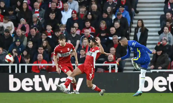 Middlesbrough từng loại cả MU lẫn Tottenham trên hành trình vào tứ kết FA Cup. Tuy nhiên, Chelsea không hề e ngại mà vẫn chủ động tấn công ngay từ những phút đầu tiên.
