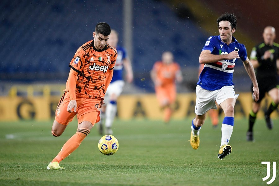 Tỷ số sớm được mở cho đội khách ở phút 20. Ronaldo chọc khe thông minh cho Morata băng xuống, tiền đạo người Tây Ban Nha căng ngang cho Chiesa băng vào dứt điểm cận thành tung lưới Sampdoria.