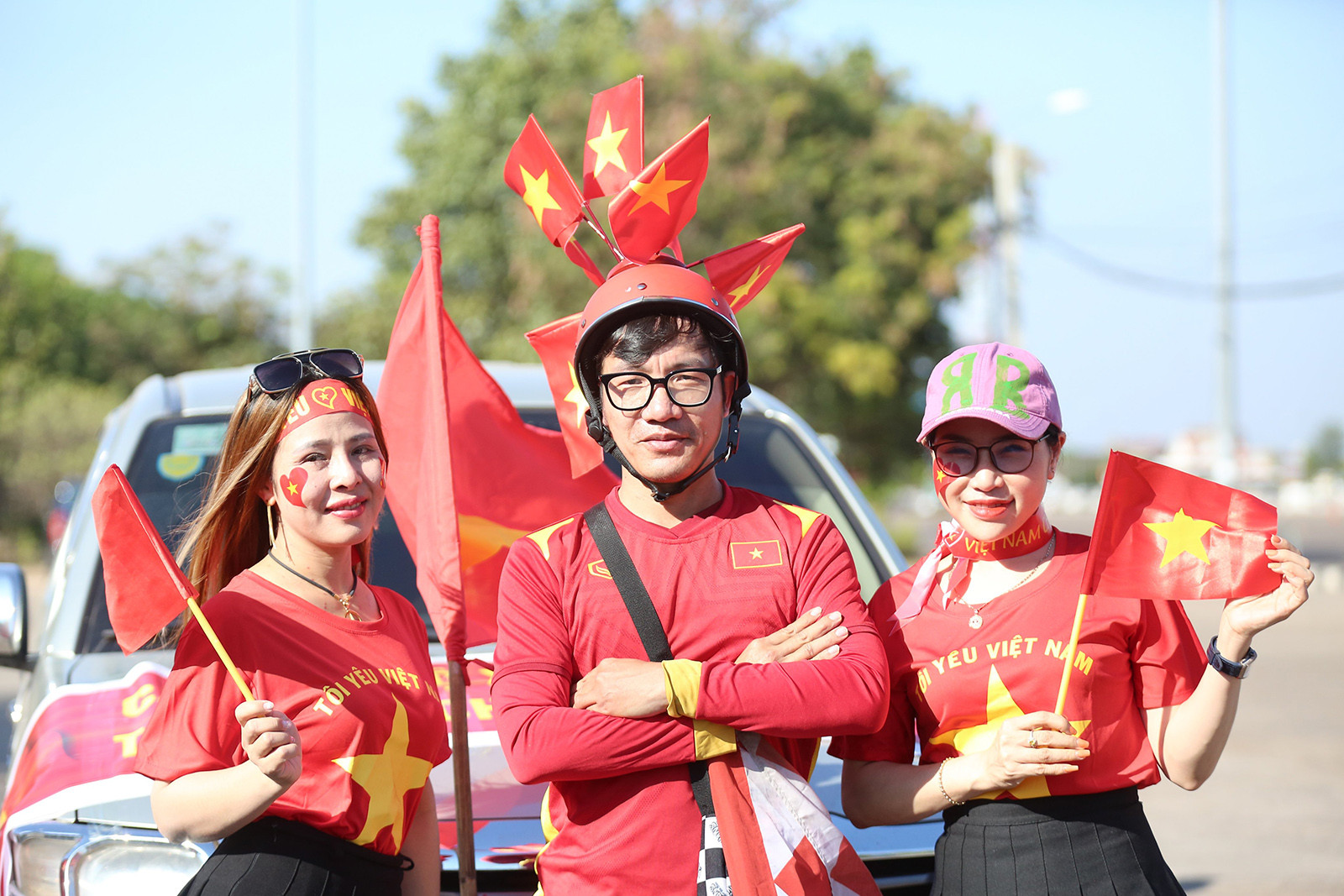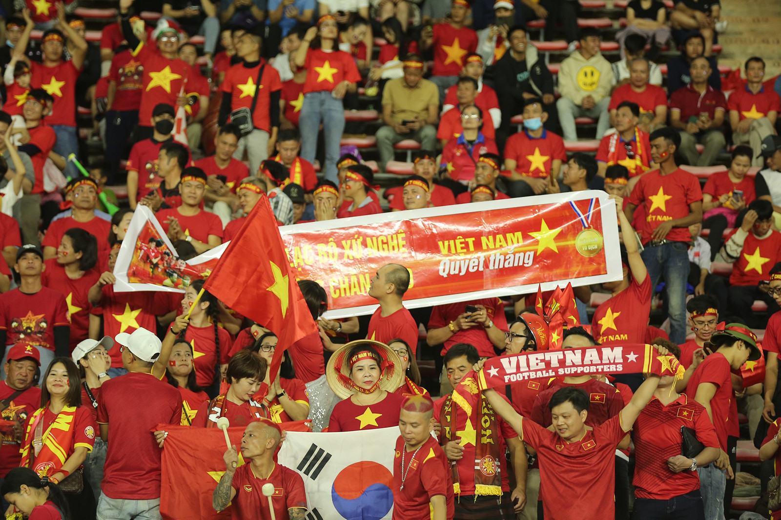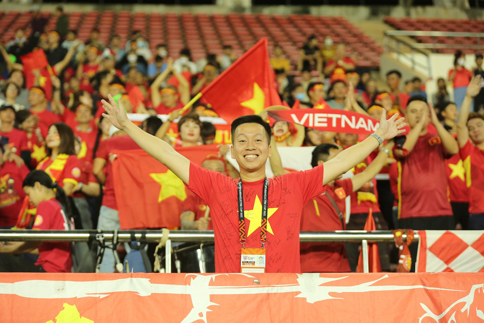 21/12/2022 | 18:24 CĐV Việt Nam sẵn sàng tiếp lửa thầy trò HLV Park Hang Seo trên SVĐ quốc gia Lào. Ảnh: Hải Hoàng