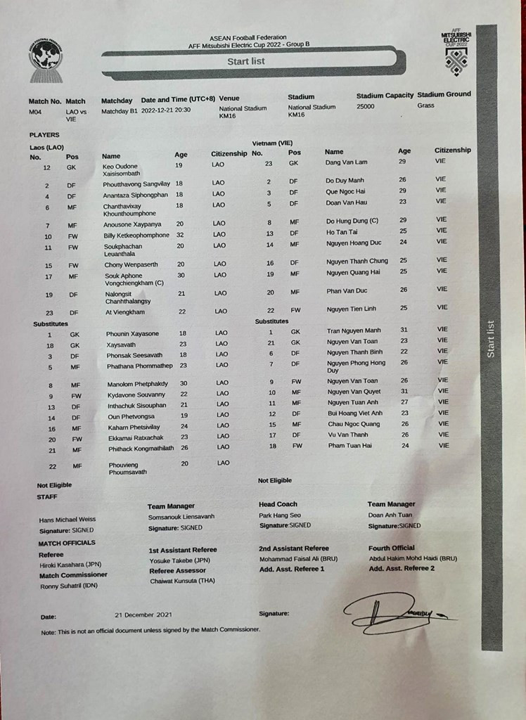 21/12/2022 | 18:12 Danh sách đăng ký của ĐT Việt Nam cho trận gặp Lào