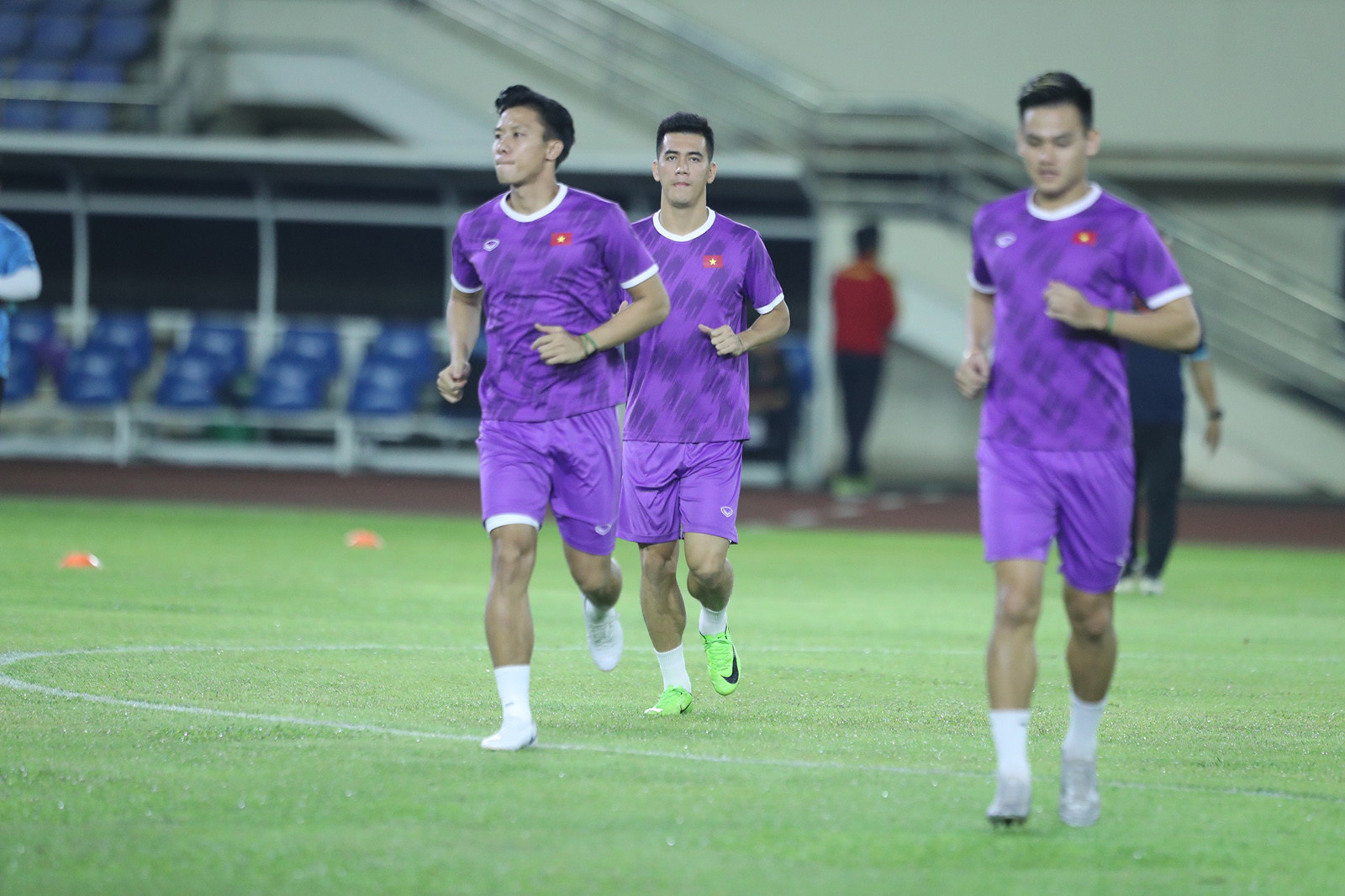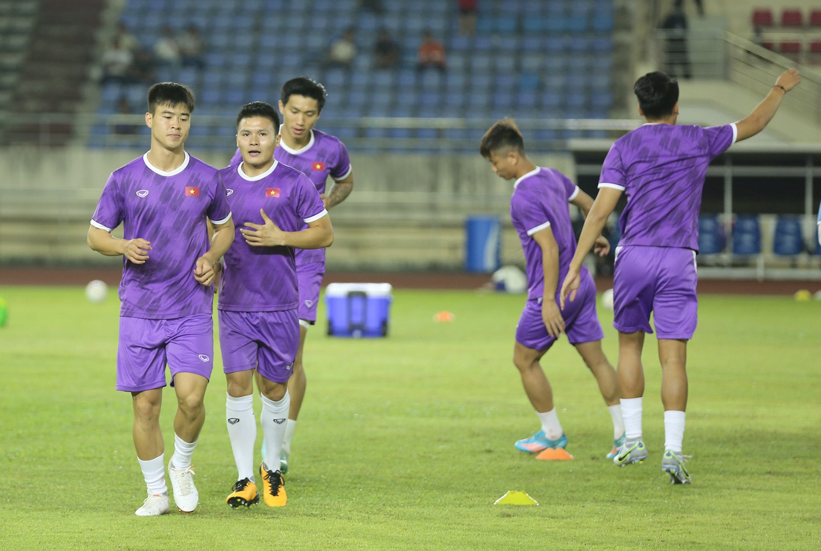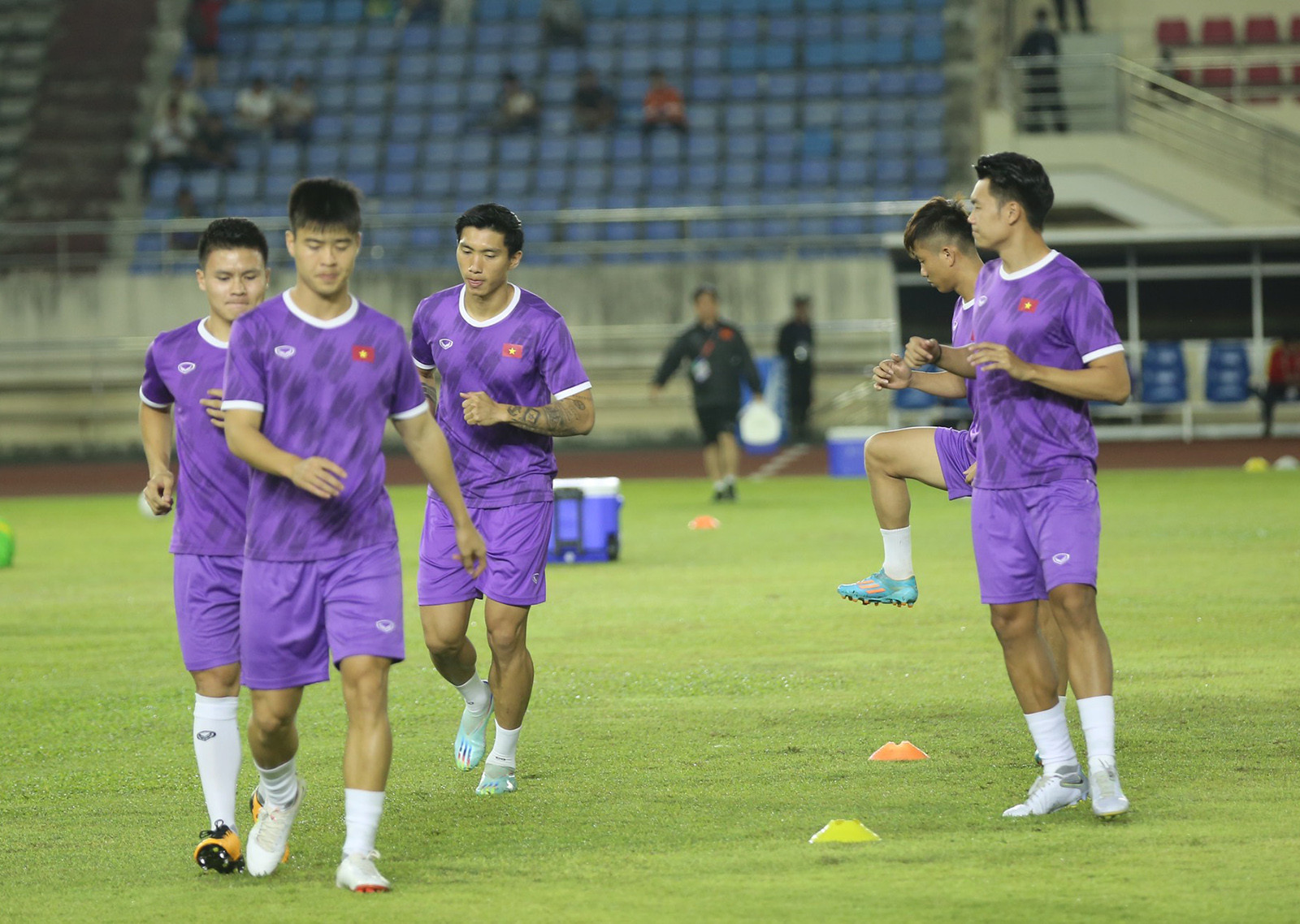 21/12/2022 | 19:02 Các tuyển thủ Việt Nam khởi động trước trận đấu. Ảnh: Hải Hoàng