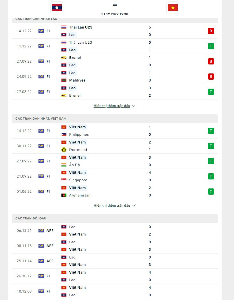21/12/2022 | 17:25 Đối đầu và phong độ