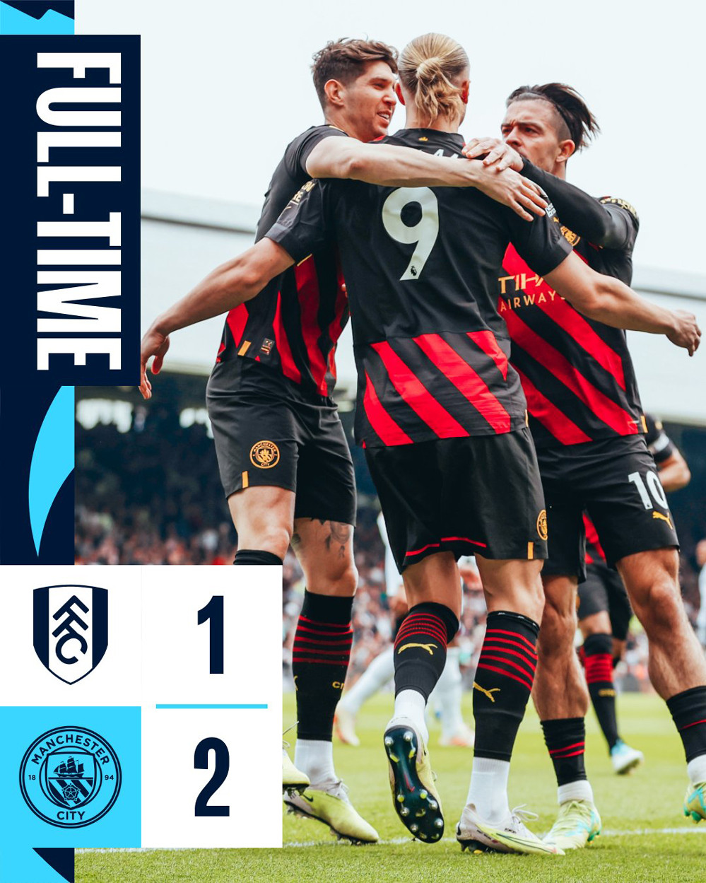 Erling Haaland đóng góp một bàn trong chiến thắng 2-1 trước Fulham, giúp Man City qua mặt Arsenal để chiếm lấy ngôi đầu bảng.