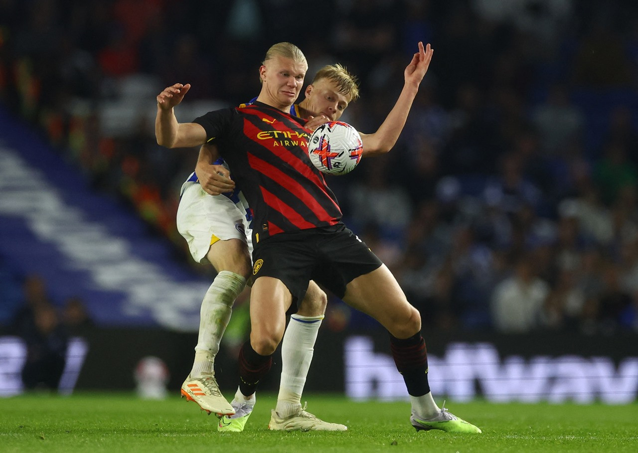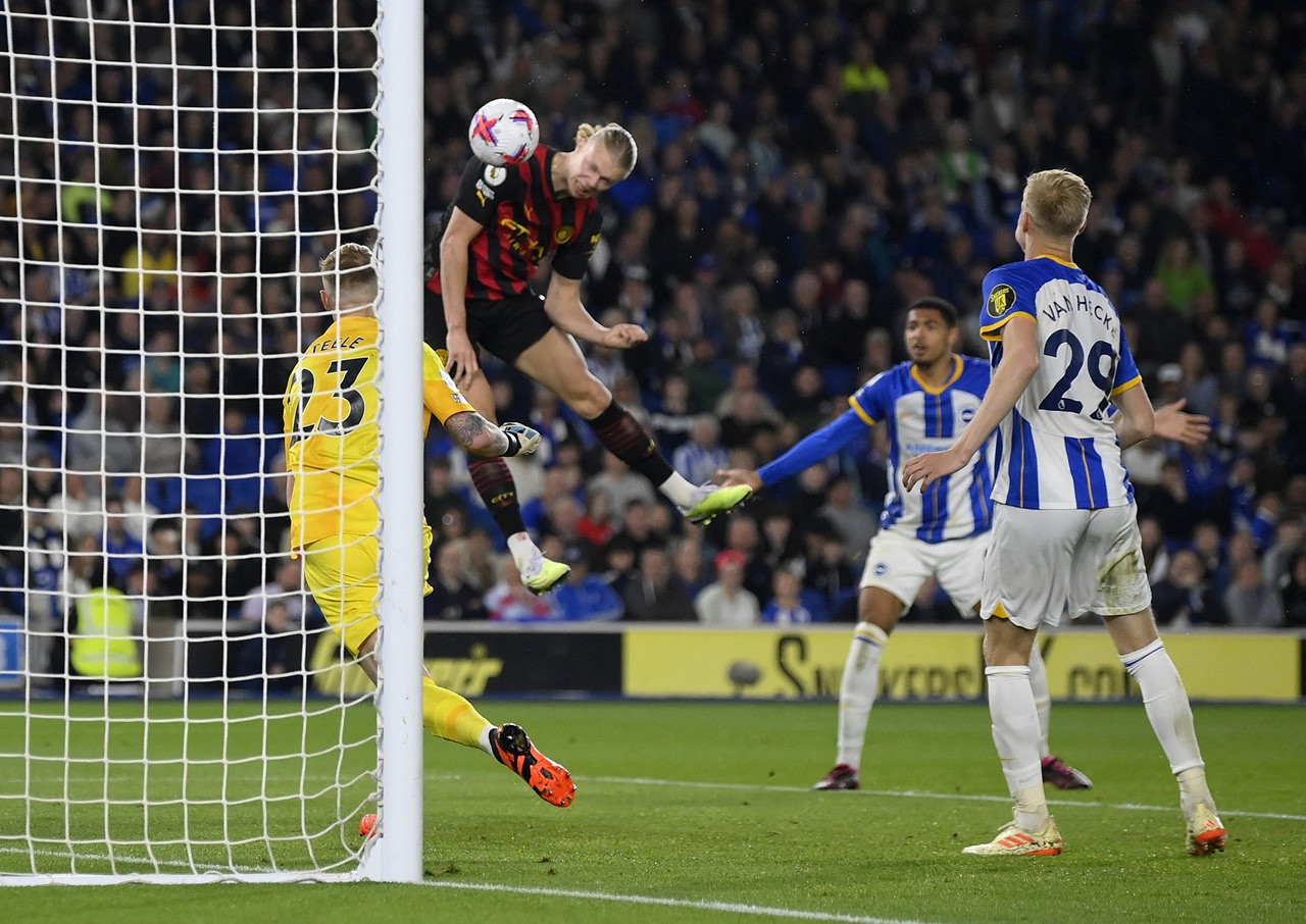 Erling Haaland hụt bàn thắng vì VAR, Man City chia điểm với tỉ số 1-1 trên sân của Brighton, thuộc trận đá bù vòng 32 Ngoại hạng Anh.
