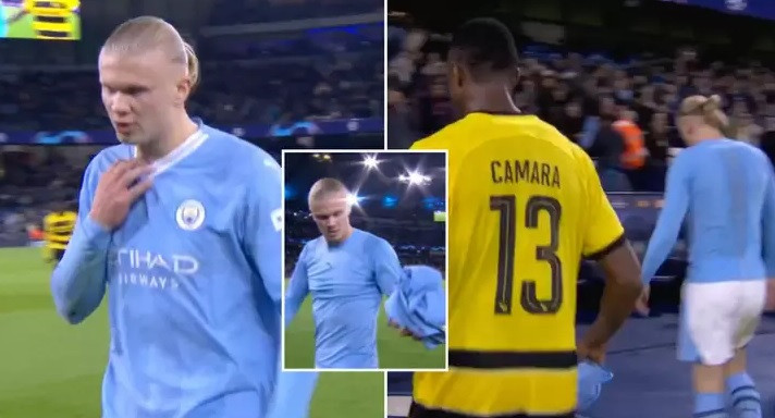 Việc cầu thủ đổi áo sau trận là chuyện hết sức bình thường, nhưng Mohamed Ali Camara đề nghị với Haaland ngay giữa hiệp và điều này lập tức gây ra tranh cãi.