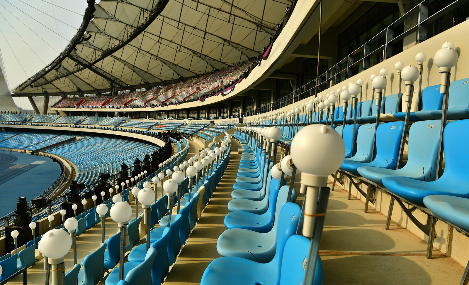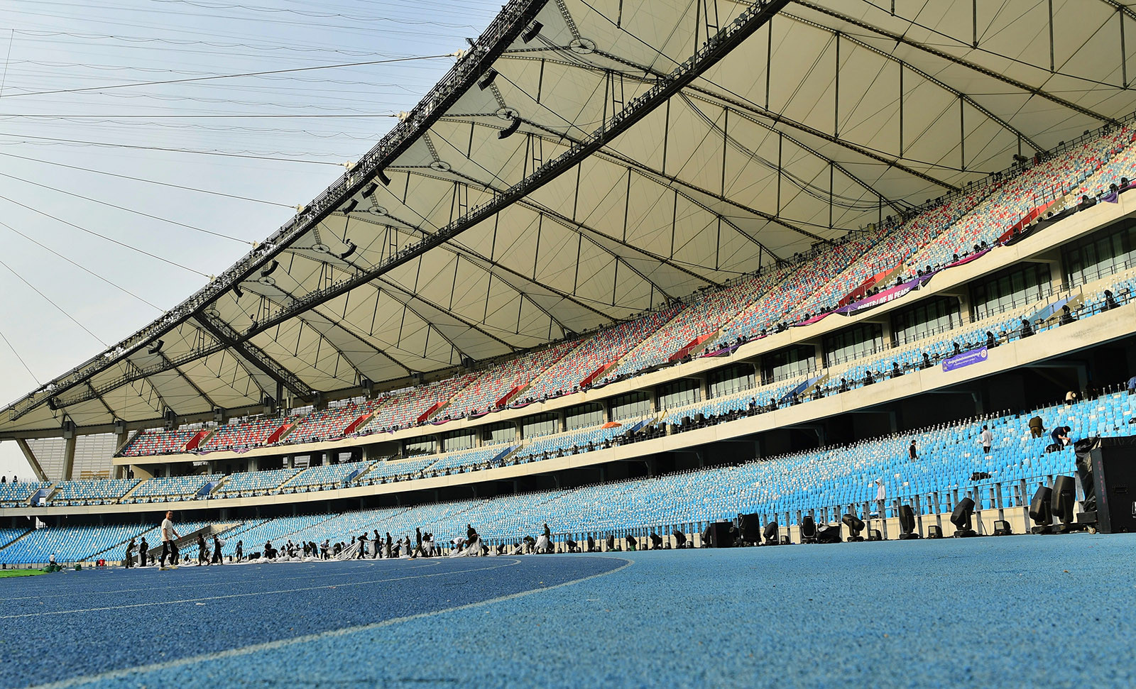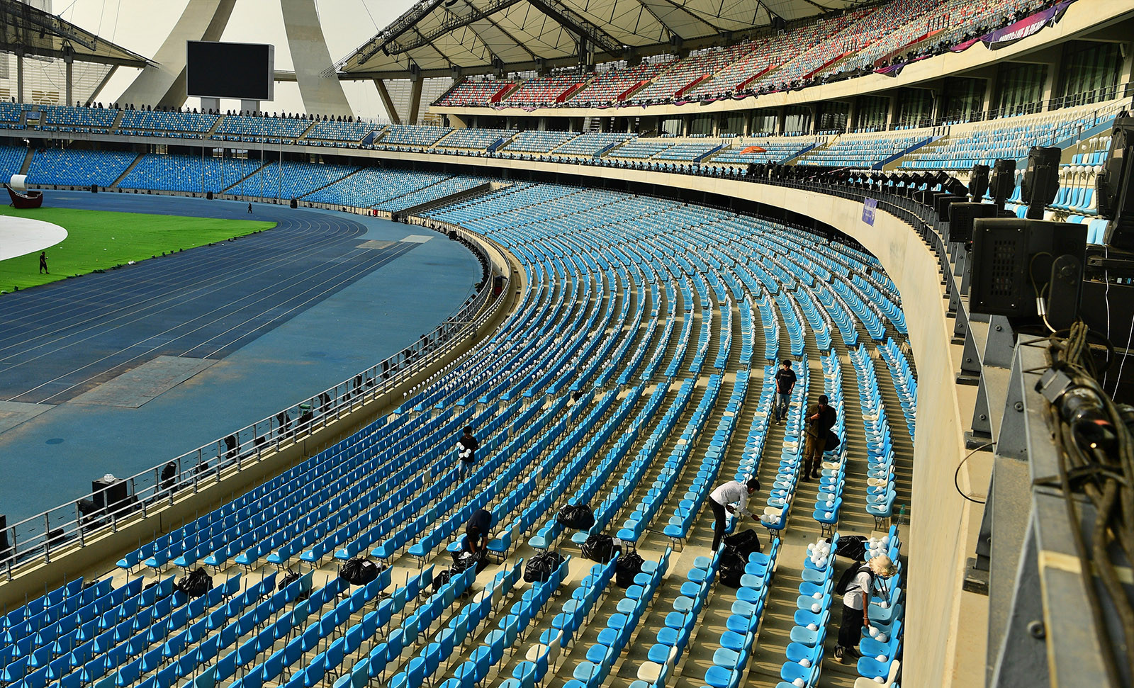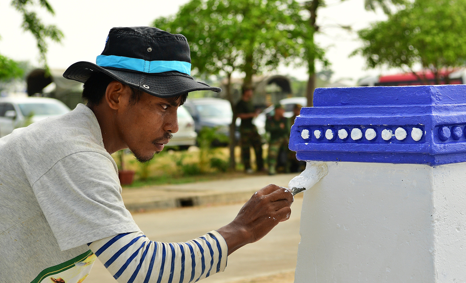 Các công nhân làm việc cả ngày lẫn đêm nhằm đảm bảo tiến độ công việc chuẩn bị cho lễ khai mạc SEA Games 32 tại SVĐ Morodok Techo.