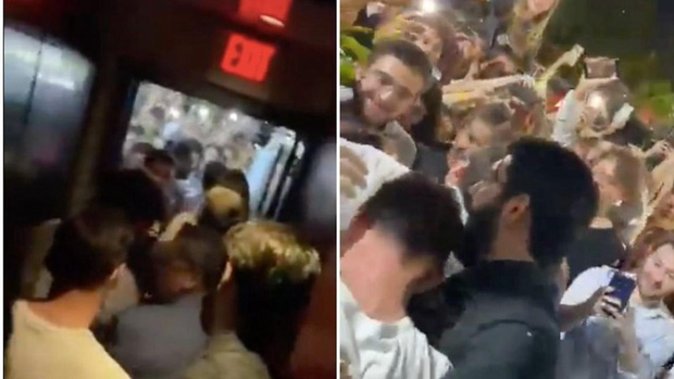 Bất chấp Messi đã đi bằng cửa sau nhưng anh vẫn không thoát khỏi sự đeo bám. Trước độ quá khích từ fan, Messi phải cúi người, bước ra trong vòng bảo vệ của lực lượng an ninh. Một CĐV nam chặn đường, chụp ảnh tự sướng cùng Messi. Nhiều người khác đứng ngoài lấy tay vỗ lên đầu, gáy siêu sao 34 tuổi.