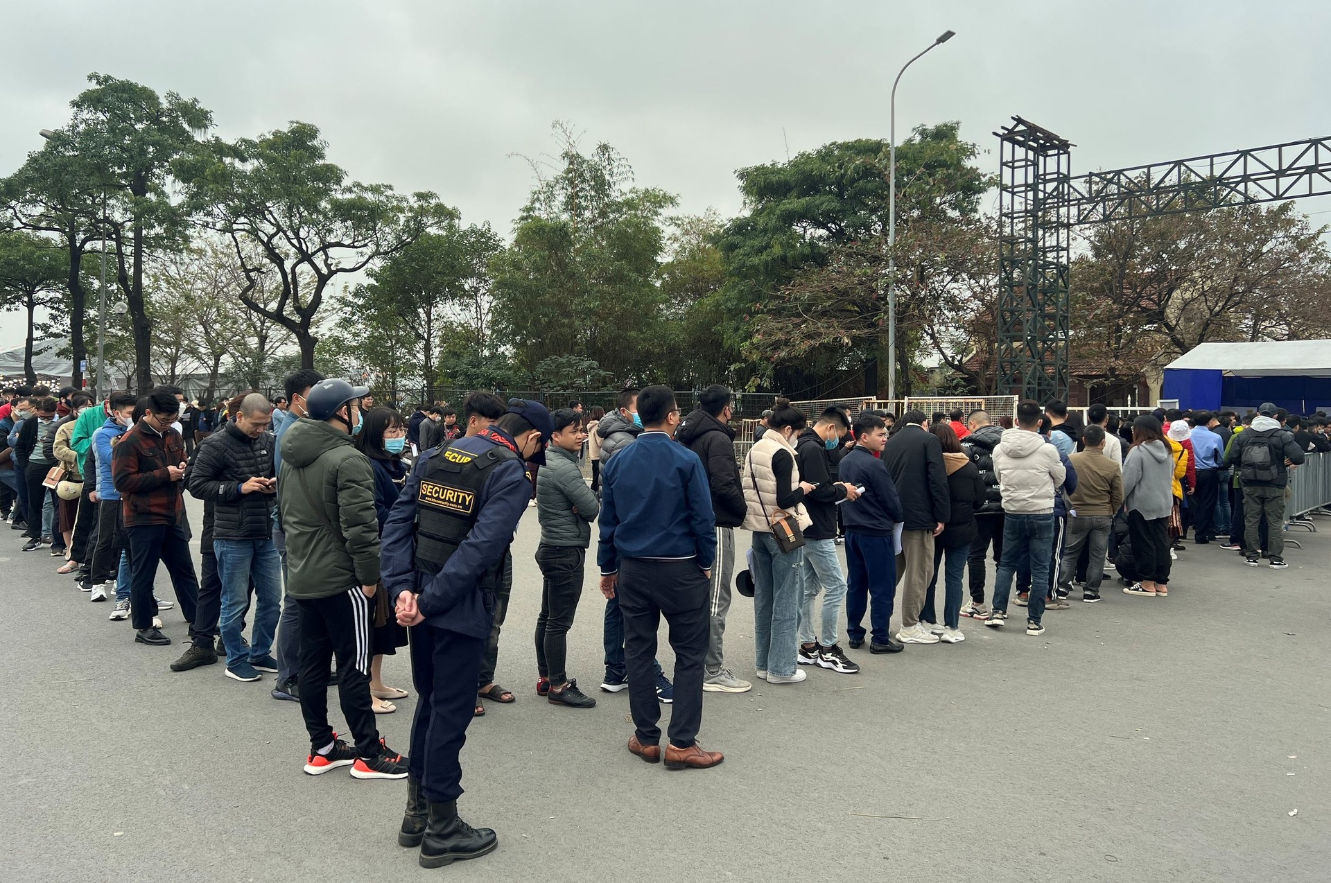 Hàng trăm người xếp hàng dài từ sáng sớm trên đường Lê Quang Đạo. Nhiều CĐV cho biết họ phải chờ tới 4 tiếng đồng hồ mới lấy được vé. Theo quy định, mỗi CĐV chỉ được mua tối đa 4 vé qua kênh online.