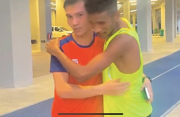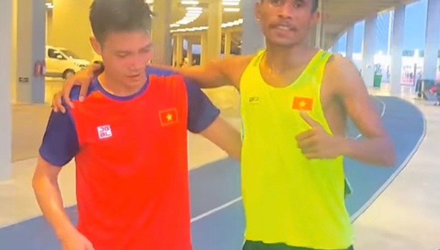 Trái ngược với sự đông đảo của các đội khác, những VĐV Timor Leste thi đấu trong sự cô đơn. Giống như trên đường chạy 10.000m như ở sân Mỹ Đình tại SEA Games 31, Felisberto de Deus vẫn lẻ bóng khi chỉ có duy nhất một HLV điền kinh cổ vũ anh trên khán đài, lọt thỏm giữa dàn VĐV hùng hậu của đội chủ nhà.