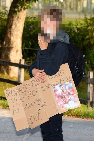 Chàng trai trẻ đứng bên lề đường, gần lối vào sân tập Carrington, trên tay cầm tấm biển với hy vọng chủ nhân của 5 Quả bóng vàng có thể thấy mình. Trên tấm biển ghi: "Ronaldo, làm ơn, anh có thể dừng lại không. Nó sẽ khiến ngày cuối tuần của em trở nên ý nghĩa".