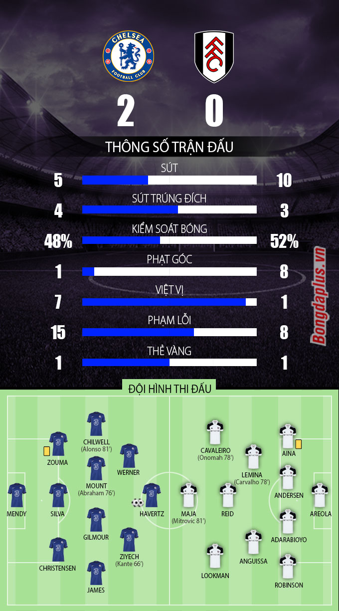 Tuy không thể gia tăng cách biệt, nhưng Chelsea như thường lệ vẫn duy trì được thói quen giữ sạch lưới dưới sự dẫn dắt của HLV Thomas Tuchel. Với thắng lợi nhẹ nhàng trước Fulham, họ tiếp tục có mặt trong top 4 BXH và tạm nới rộng khoảng cách với đội xếp thứ 5 là West Ham lên thành 6 điểm (61 so với 55).