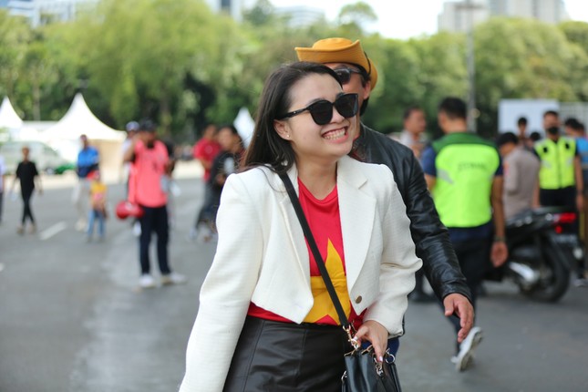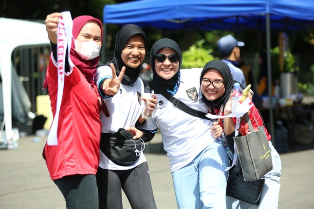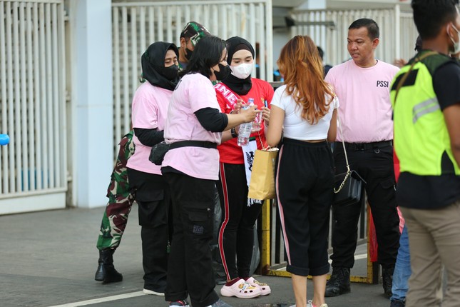 15h10': Nhan sắc xinh đẹp của các cổ động viên Indonesia và Việt Nam trước trận. Ảnh: Tiền Phong