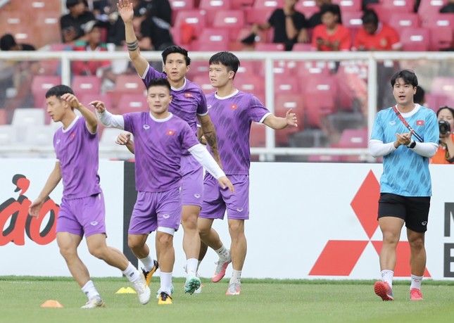 16h18': Các cầu thủ khởi động trước trận đấu. Ảnh: Tiền Phong