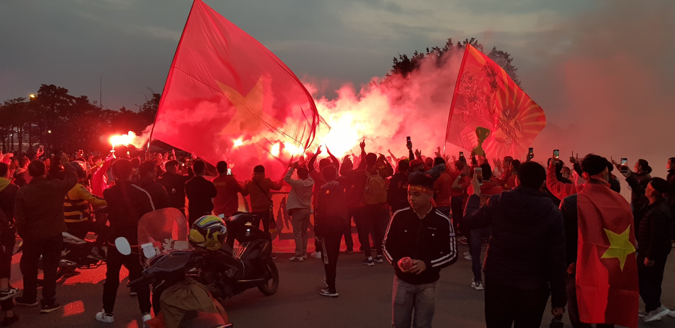 18h30': CĐV Việt Nam tạo nên bầu không khí cực kì cuồng nhiệt trước trận đấu. Ảnh: Song Ngư