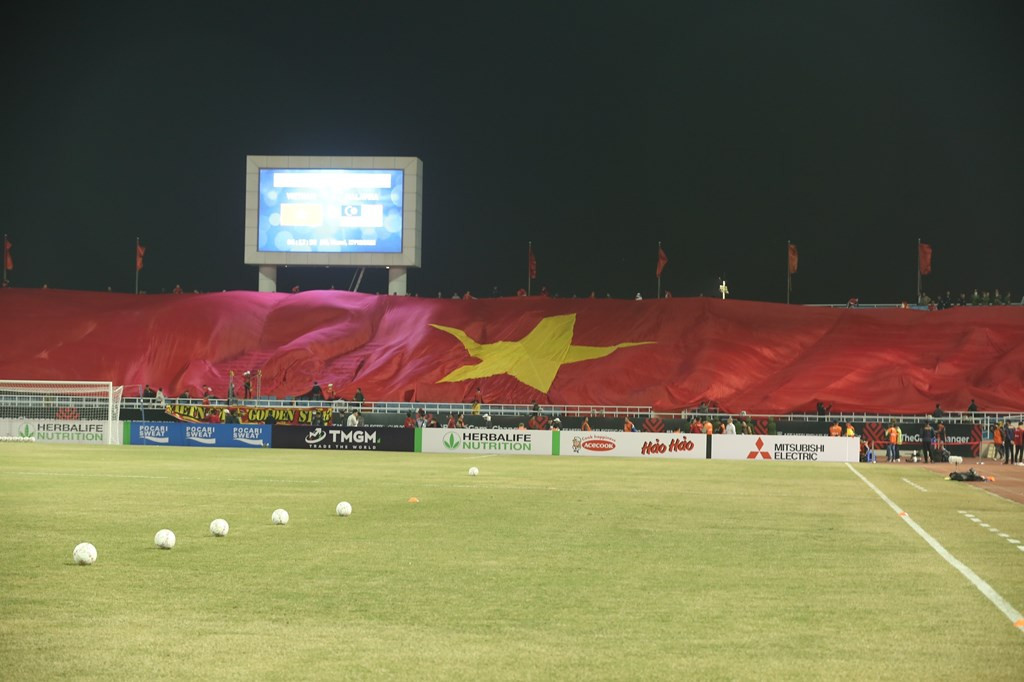 18h40': Lá đại kỳ Việt Nam trên khán đài sân Mỹ Đình. Ảnh: Song Ngư