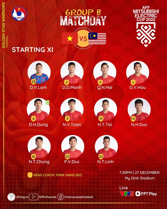 Đội tuyển Việt Nam tiếp tục hành trình tìm lại ngôi vương AFF Cup 2022 bằng màn đọ sức với đội tuyển Malaysia trên sân nhà. Đây cũng là đối thủ lớn nhất của thầy trò HLV Park Hang Seo tại vòng bảng năm nay.