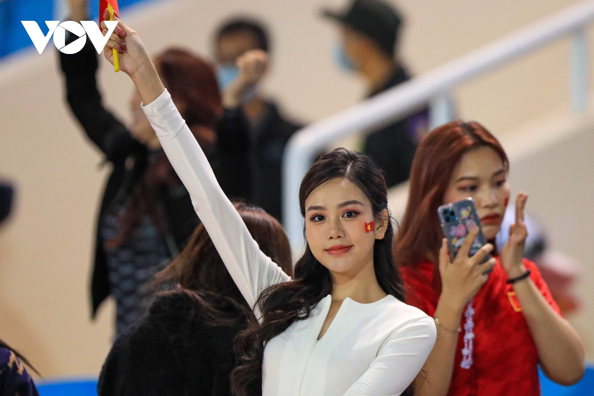 19h00': CĐV có mặt trên khán đài cổ vũ Tiễn Linh cùng các đồng đội vượt qua Malaysia. Ảnh: Hoài Thương (VOV)