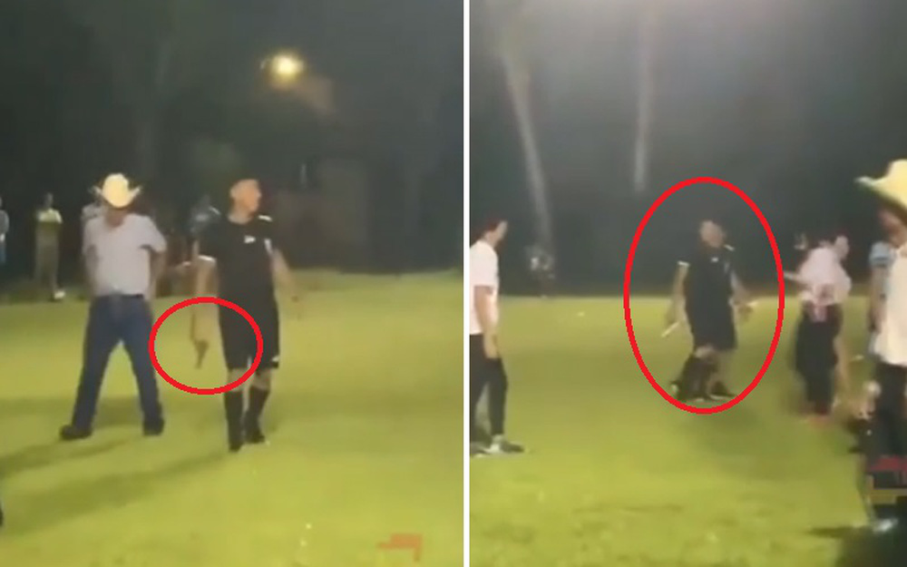 Đòn "phản công" này khiến cho nhóm CĐV sợ hãi và nhanh chóng bỏ chạy. Vị trọng tài cũng không nổ súng mà chỉ cầm trên tay để cảnh cáo những fan quá khích.