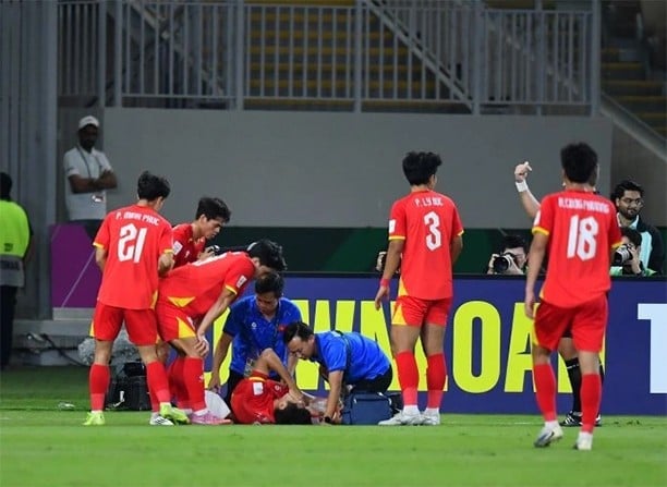Hình ảnh Hiểu Minh bật khóc, kéo áo che mặt khi rời sân đã khiến nhiều người không khỏi xót xa. Sự tiếc nuối hiện rõ trên gương mặt trung vệ trẻ khi anh phải bỏ dở trận đấu quan trọng bậc nhất của sự nghiệp trong màu áo U23 Việt Nam. HLV Kim Sang Sik sau đó đã tung trung vệ Đức Anh vào sân để thay thế.