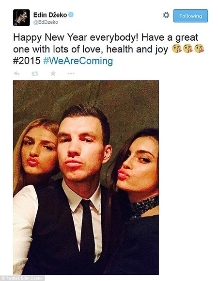 | Tiền đạo Edin Dzeko chào đón năm mới bên cạnh 2 người bạn. |
