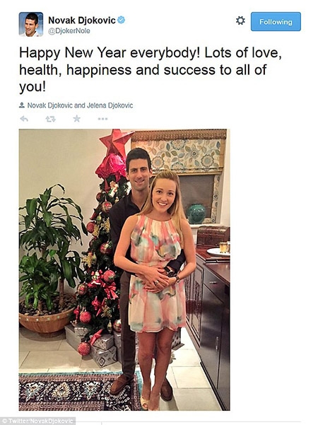 | Siêu sao làng quần vợt Novak Djokovic cùng vợ Jelena ước những điều tốt đẹp nhất đến trong năm mới. |