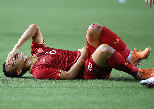 09/12/2019 01:55Hình ảnh Trọng Hoàng 2 đầu gối đẫm máu vẫn lăn xả ở trận bán kết khiến người hâm mộ rớt nước mắt