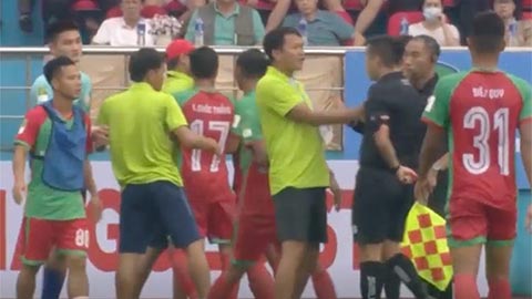 Cho rằng tổ trọng tài bắt không đúng, BHL và các cầu thủ Bình Phước đã phản ứng dữ dội. Trong đó, HLV Lê Thanh Xuân cũng vì không kiềm chế mà đã bị trọng tài Trần Ngọc Ánh rút thẻ đỏ trực tiếp. Ngay sau tình huống đó, tay của ông Xuân đã va vào mặt trợ lý trọng tài.