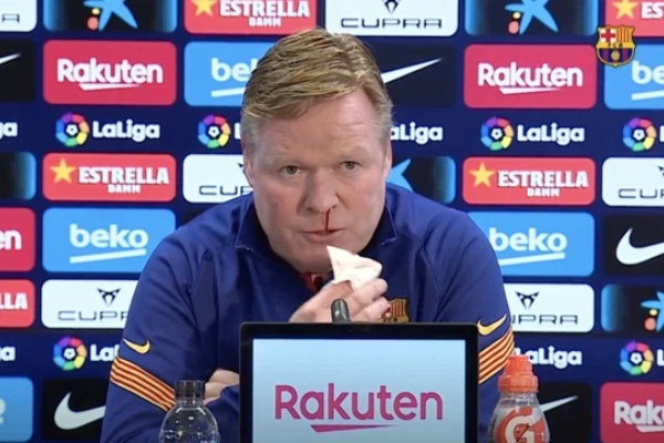 27/02/2021 21:45HLV Koeman chảy máu mũi giữa buổi họp báo, CĐV Barca lo lắng
